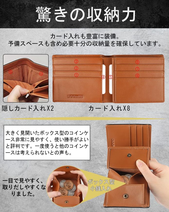 - ✅『 BOX型小銭入れ』大きく開くボックス型で、小銭を探す手間もかかりません。一目で小銭を判別しやすいのでレジ前で慌てず、会計が簡単に完了できます。仕切りの高さがあるので、小銭がこぼれる心配もありません。