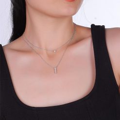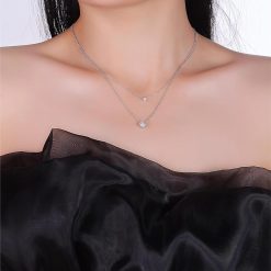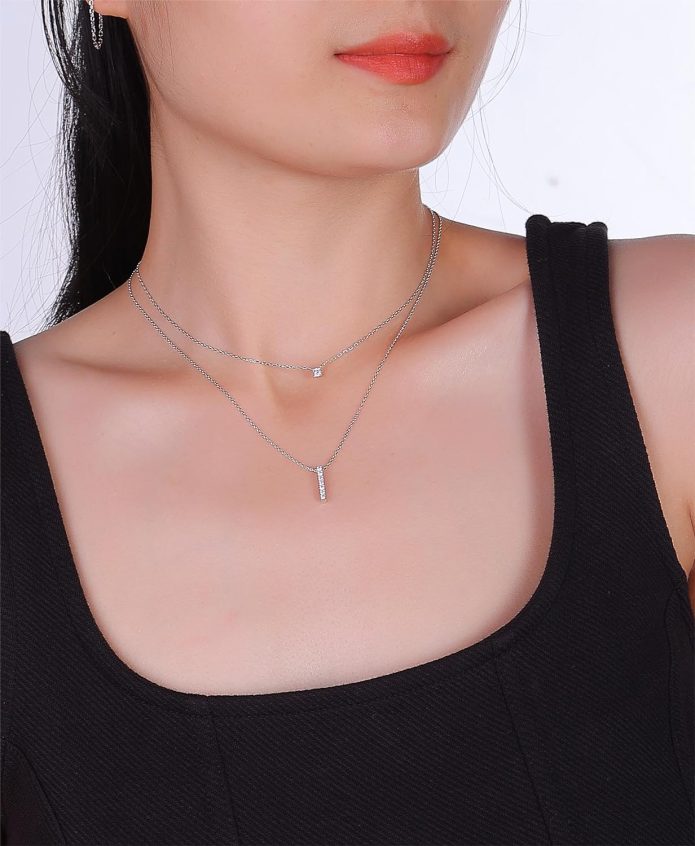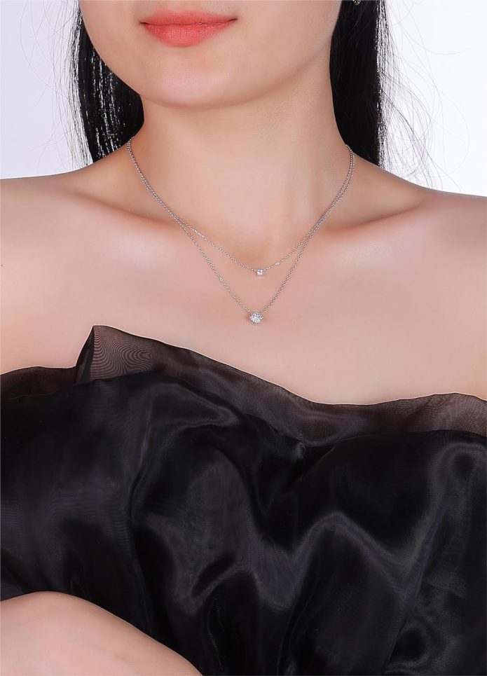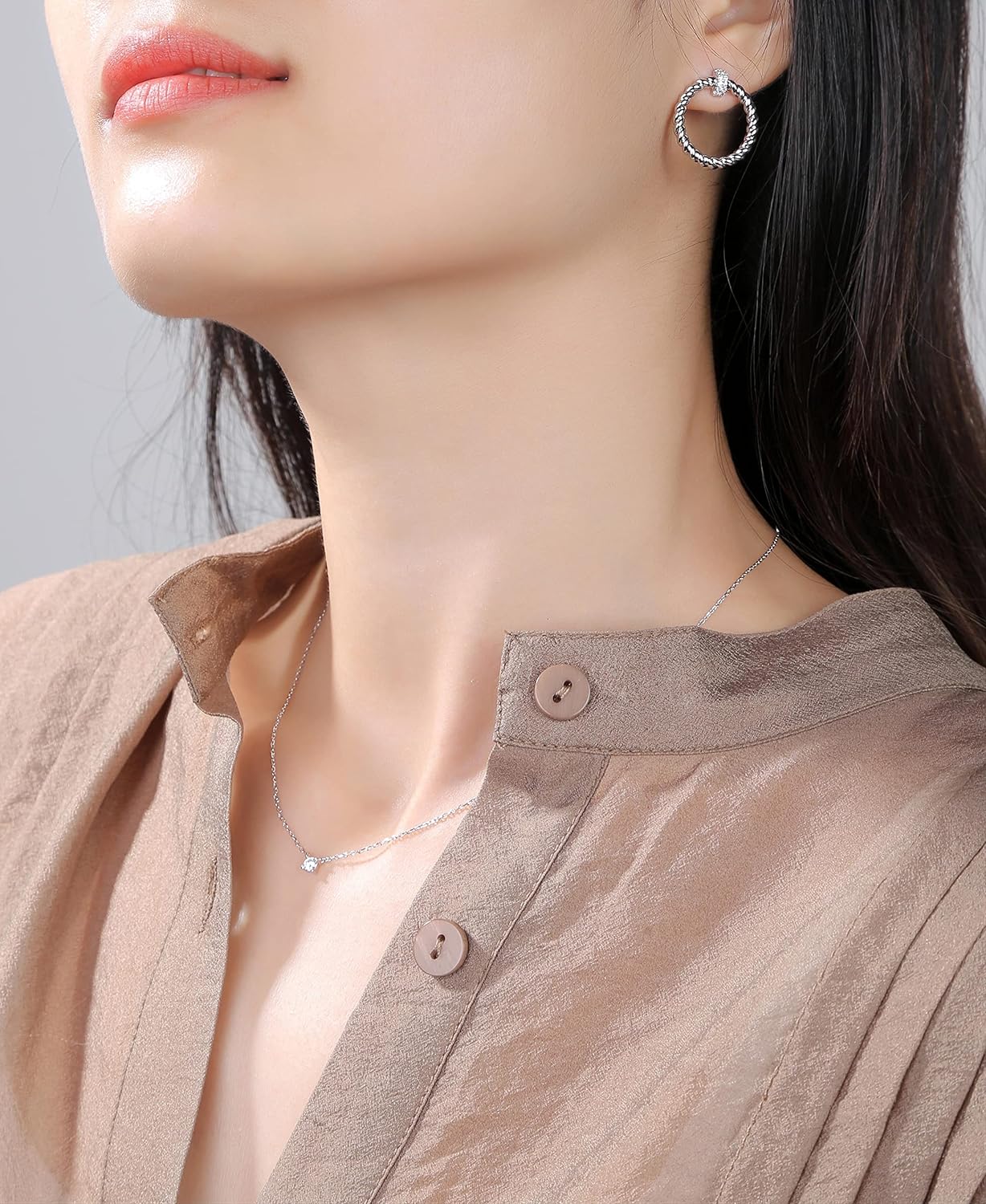 【サイズ:両吊りトップ石RD3mm;カットあずきチェーン幅1mm細め×全長さ40㎝、4㎝短くつけてチョーカー風に】 >チラ見せ小さい一粒ダイヤが紡ぐ華奢短めネックレスで、イキイキフレッシュに輝く知的エレガントな小顔をメイク💛
