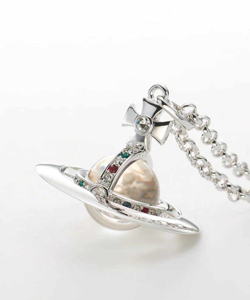 Vivienne Westwoodの代表的なデザインの一つである「SMALL ORB ネックレス」。長めのチェーンと大きな立体ORBで存在感たっぷり。デイリーやパーティにも活躍するアイテム。環境に配慮しリサイクルブラスを使用しています。