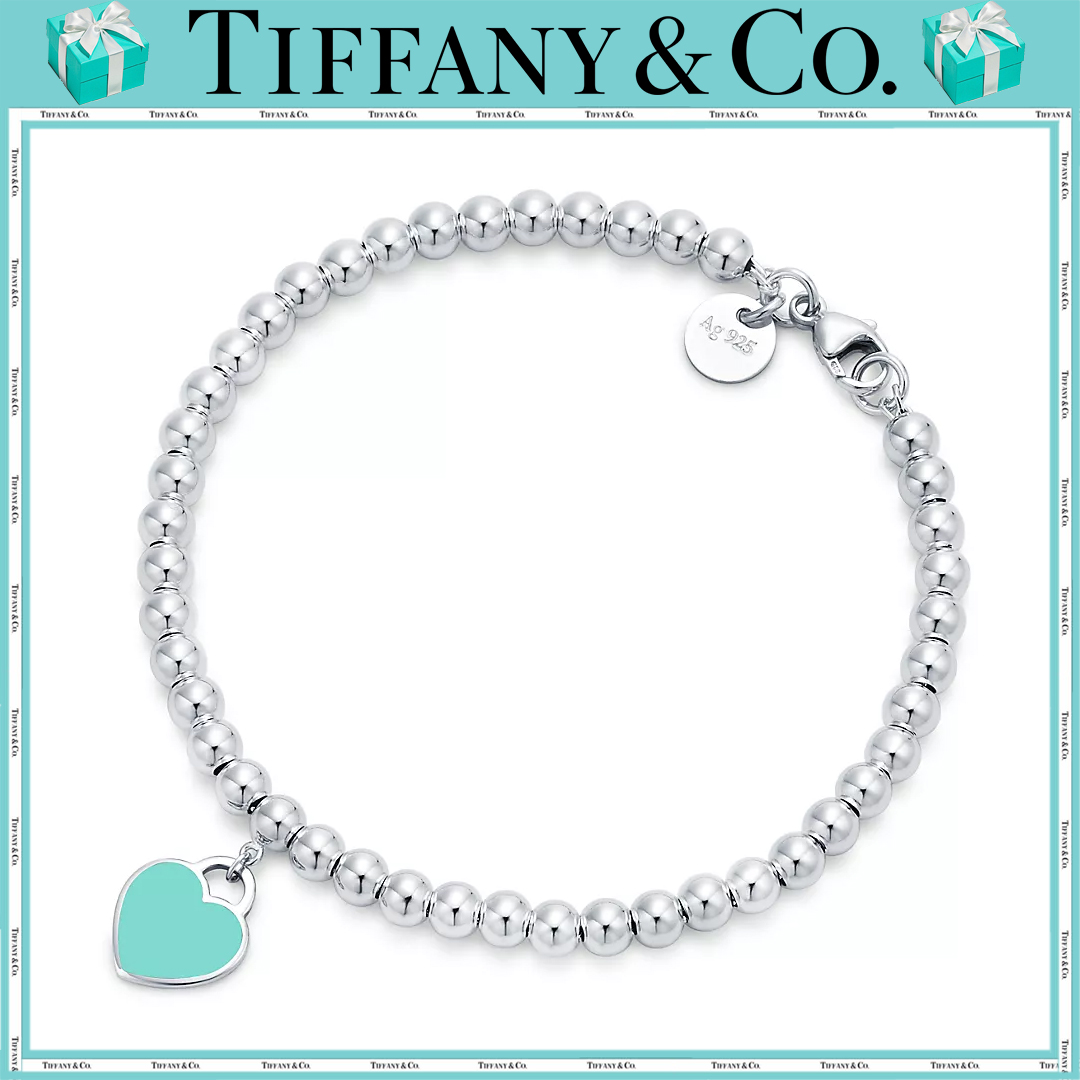 【国内発送/直営店】ティファニー ブルー ハート タグ ビーズ ブレスレット シルバー、4mm